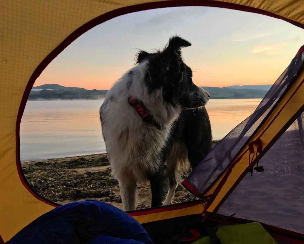Needless to say we were exhausted when it was time to sleep and I slept SO HARD, even though the tent was filled with wet sand and stinky dog. Momma said Loki Lolo was up and alert to any noise the coyotes were making – which was a lot of howling and barking. We got up to potty around 3 in the morning and so it was a good chance to put our scent all over the beach again to make sure they wouldn’t come bother us!