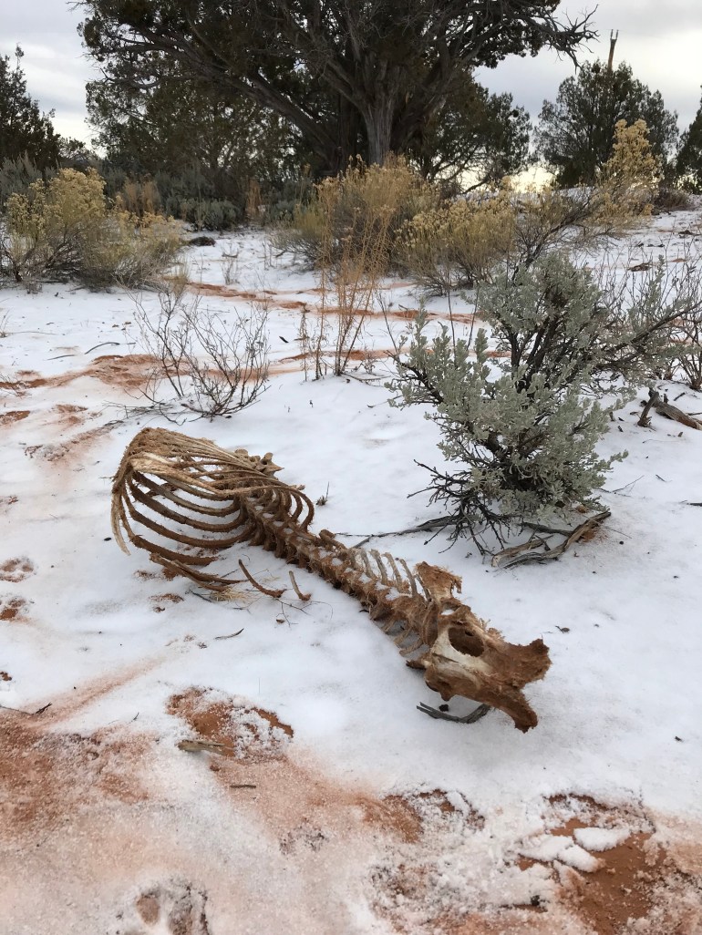 She wasn’t surprised to see that OF COURSE we found lots of body parts. We were a little surprised to wake up to SNOW in the desert!