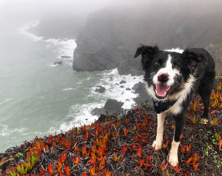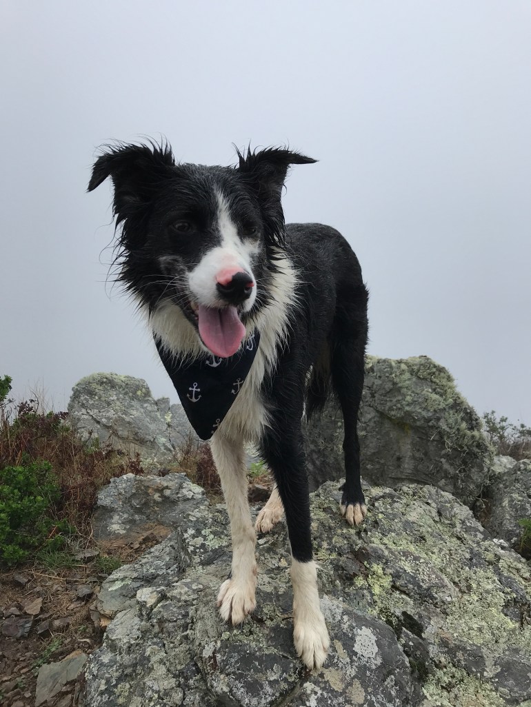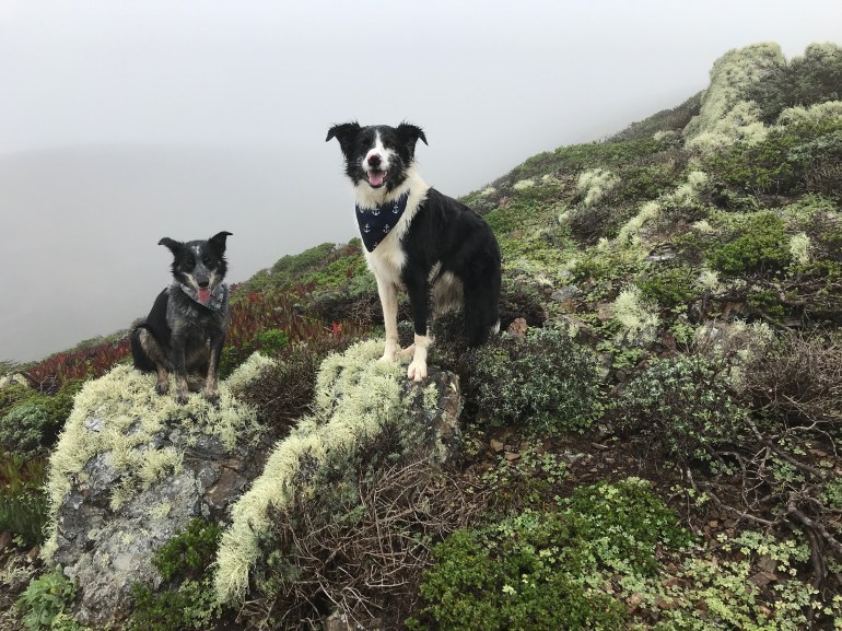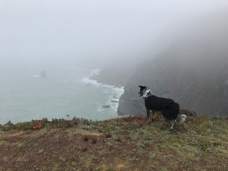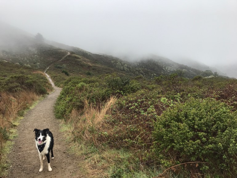 There were hardly any people out in the rain and fog, or else we just couldn’t see them! So it was really fun and we decided to take the junction down along the Wolf Ridge where we met up with the Miwok trail and the signs indicated dogs were no longer welcome in that area.