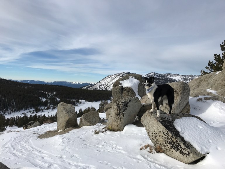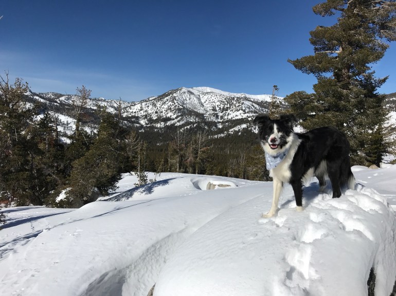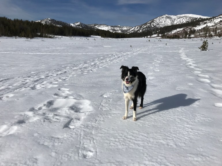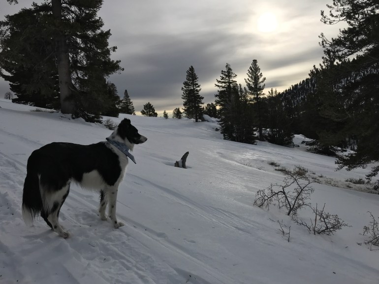 Since we had an early start we were up at the trailhead in the Mt. Rose meadows shortly after 8:30 a.m., which was awesome because we had a lot of space to explore. Momma wore her snowshoes because last time we were up there she did not have them and was surprised at how much snow there was because there hasn’t been much snow in Tahoe this year, and it seemed like it was all HERE. So today we were much better prepared.