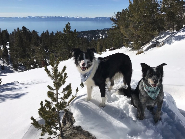 Eventually we started to hear voices as we popped out of the woods to a vista all the way down to Lake Tahoe. It was beautiful! And that was clearly why we’d seen tracks up there, all the people who were up there were also there for the vista.