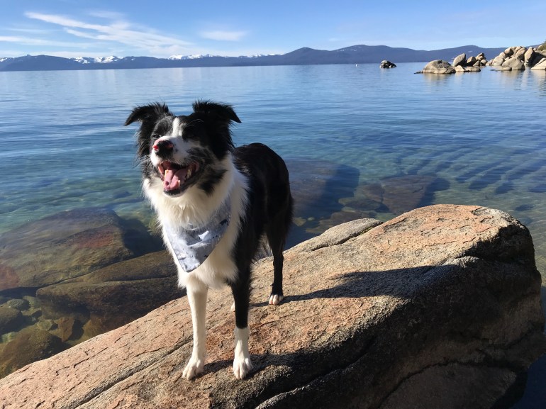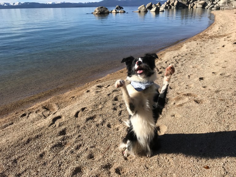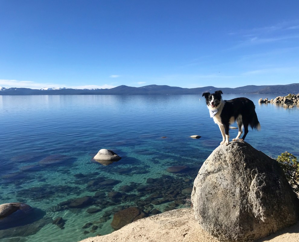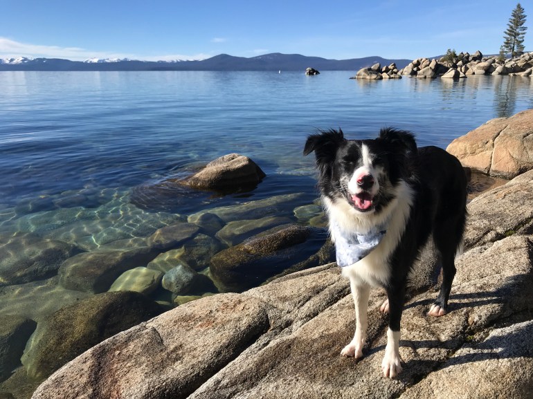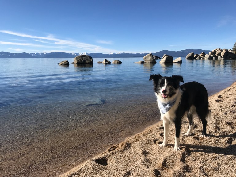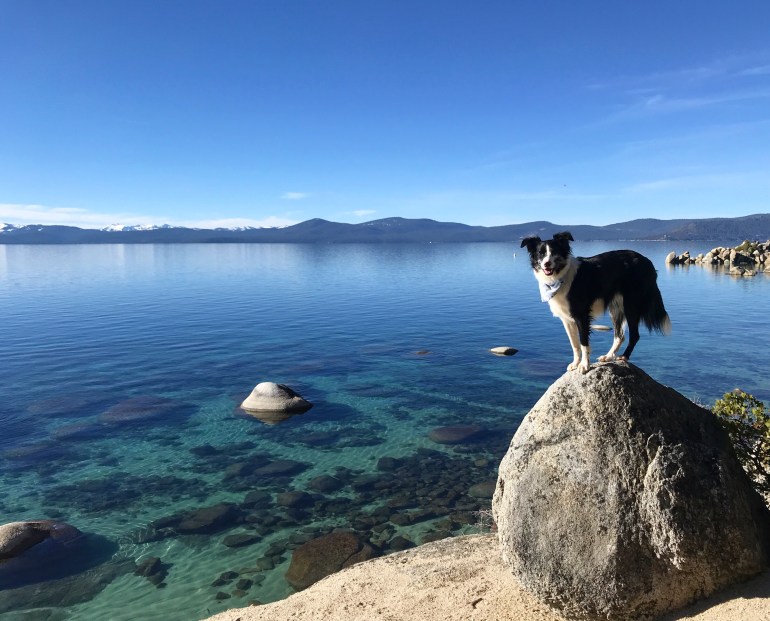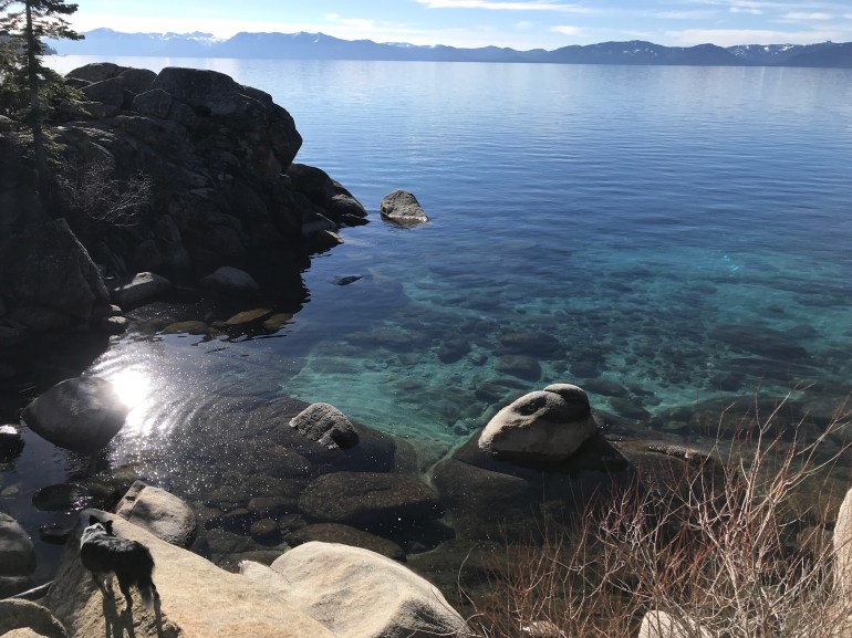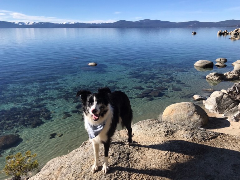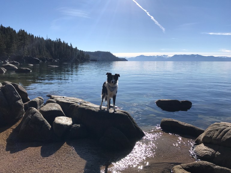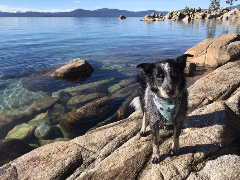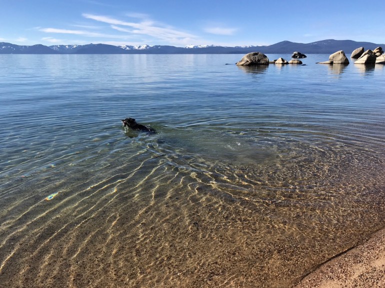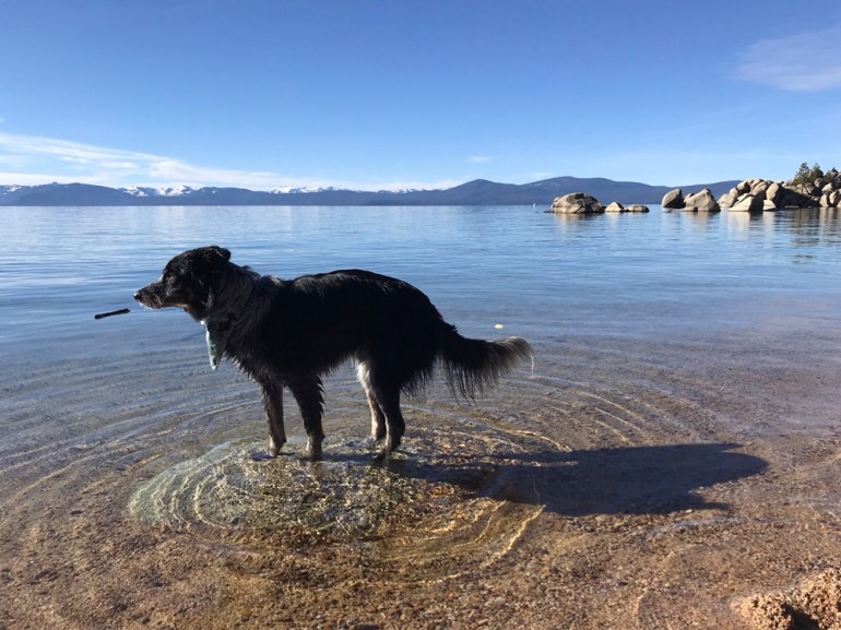 The trail was pretty familiar because we had been in the area last month, and we made our way down to Lake Tahoe’s Chimney Beach to eat our lunch. Lolo did some swimming and fetching but it was a lovely, calm and sunny day for just hanging out by the lake.