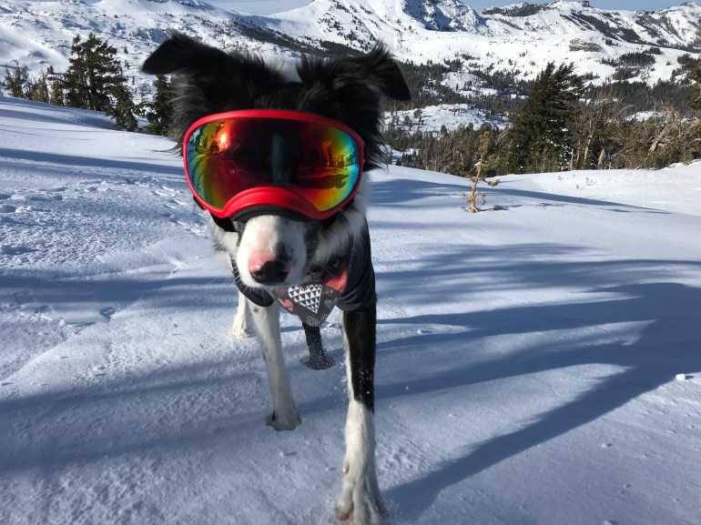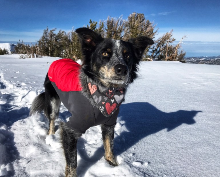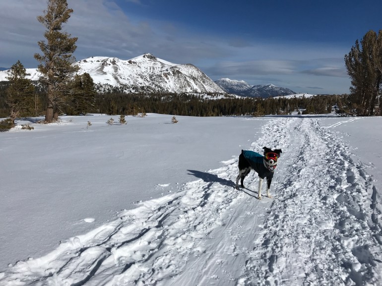 In the parking lot there were quite a few backcountry skiers gearing up, and a boy and his dog, Simba that we sniffed out while momma put on our paw wax and coats. We hardly ever wear coats but momma said it was cold enough that we had to!