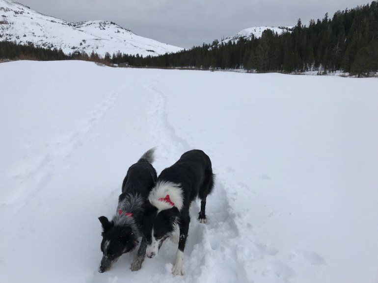The views from this hike are pretty spectacular, which is why momma likes to come. She also enjoys that there is a big meadow for us to explore, and you can see from a distance in lots of areas if people are coming. Since Lolo and I can be surprised by people on skis, we have to be extra careful and close to momma when she can’t see super far ahead to make sure we don’t get into any trouble!