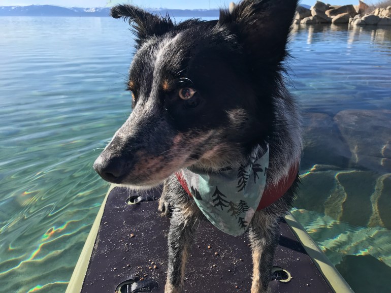 We then went back to Sand Harbor to put in with daddy (who didn’t have a life jacket, leash, or neoprene booties like momma) but he got to paddle on a board all by himself even though I was more than willing to get onto his board with him. Lolo and I did a bit of jockeying for position on Saturday which momma was not a fan of, since she really, REALLY doesn’t want anyone to fall in the water right now since it is winter time and the water is pretty cold! She thought Lolo was being a bit more fidgety because he was worried when his daddy was too far away from us.