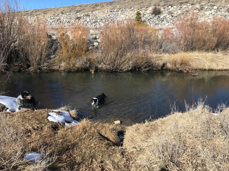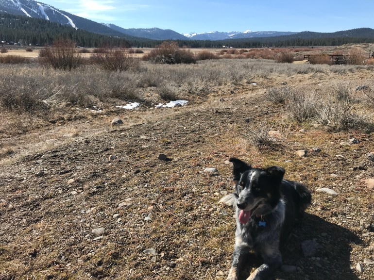 Since we had just paddled a long ways on Friday momma decided we would go hike in Truckee on the way to Lake Tahoe so that Lolo and I could have a good sniff and explore time. Since it was Saturday we saw quite a few people and dogs out there, but as with all things Tahoe everyone is happy and pleasant and the dogs are all friendly! We had such fun running around in the soft muddy ground and it was so warm that I even went for a swim in the creek!
