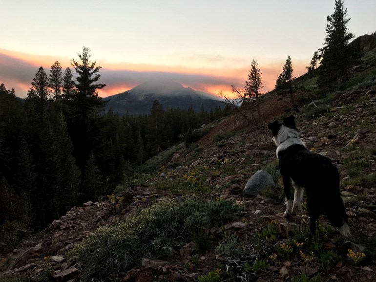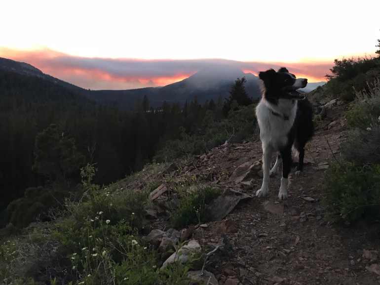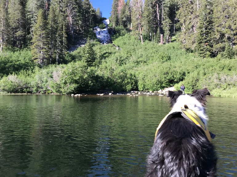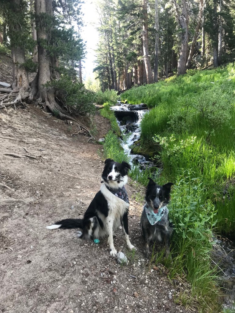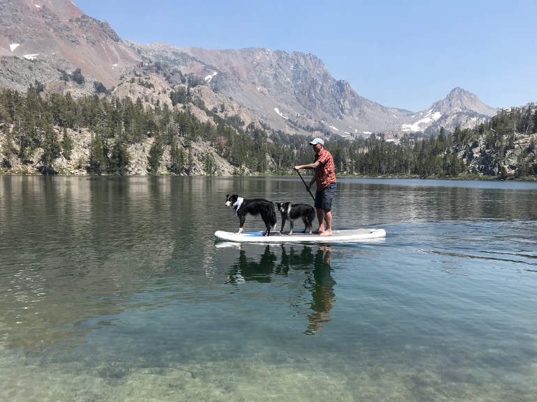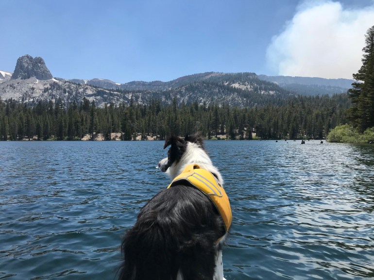 The first morning at Coldwater Campground we decided to hike up to Heart Lake with the inflatable SUP. Did I mention our site was the closest to ALL the trailheads here? Well, it was! Dad agreed to carry the SUP up the hill while momma would carry it back down. This meant we had a nice pace in both directions! Heart lake was a beautiful (small) lake that we got all to ourselves. We passed several people and horses on our way back down to camp for coffee and breakfast. The smoke from the fire was really starting to come into the campground after breakfast so momma decided we would go find two more lakes to SUP at that would be higher than the smoke “line” which was at about 8000 feet. She had talked to a couple of guys who had gotten at least some information so we could make a good decision.