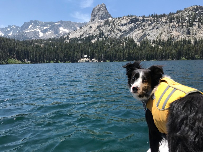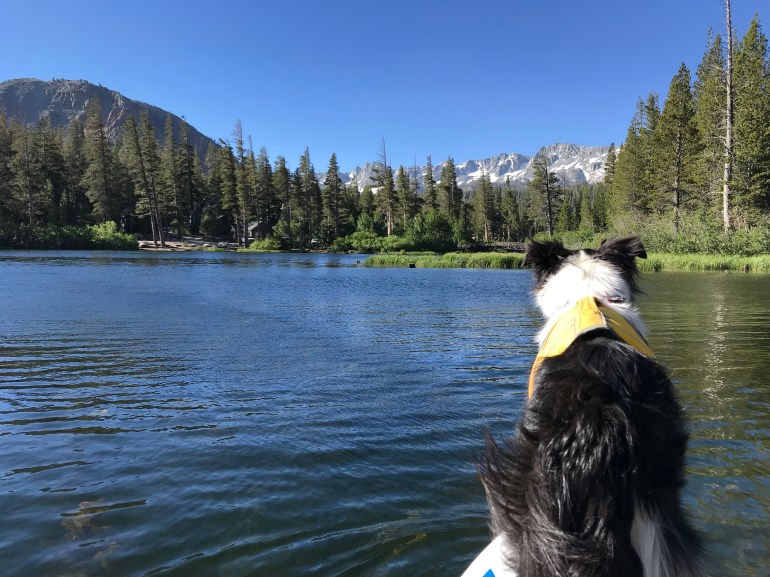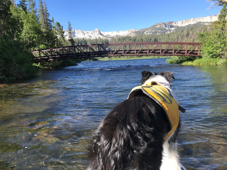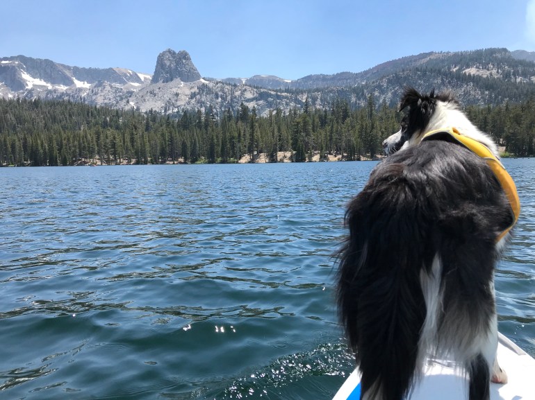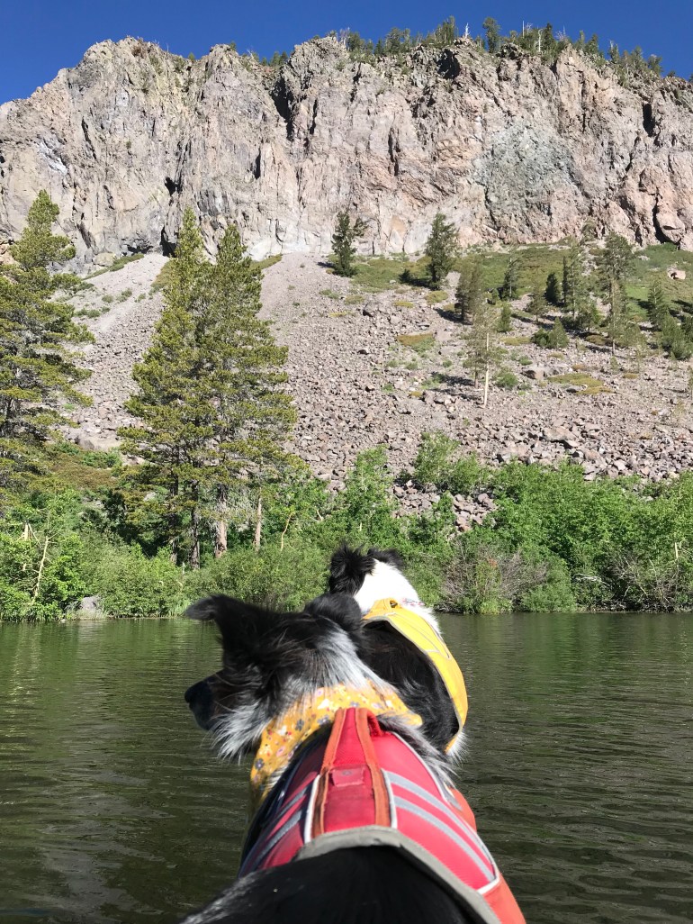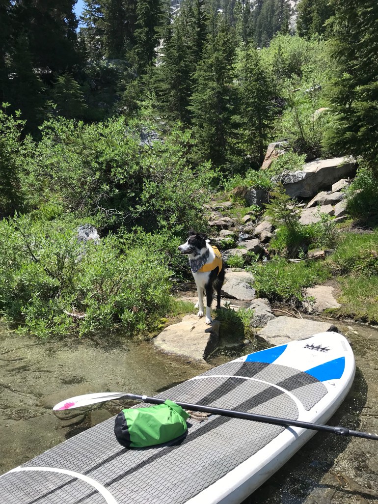 That night the wind was howling. It will be better in the morning, she said. Well guess what. It was a little better, but not really. The thing is, momma is an idiot and says “I want to SUP all the lakes in the Mammoth Basin so we have to do this”. So off we go! At first, we are in the wind-free zone in the upper twin lakes by the giant waterfall that cascades down from Lake Mamie. Then we had to go under a bridge to get to the ‘real’ Twin Lakes. As we get closer to the bridge momma begins to wonder if there is enough clearance for us to make it under. And by make it under I mean we are ALL LAYING FLAT ON THE BOARD!