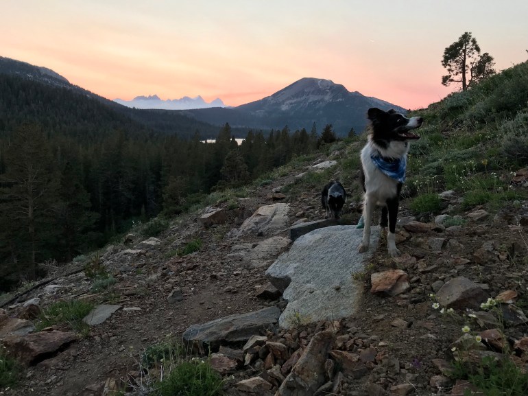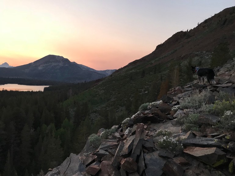 Finally we were headed into camp for the night. We had a very private spot at Upper Twin Lakes which was the final lake momma had on our list for the day. But it was now incredibly windy and she was incredibly tired (as were we). So we went on a nice long walk with dad while she ate some food and took a shower. Surely it will be better in the morning she said.