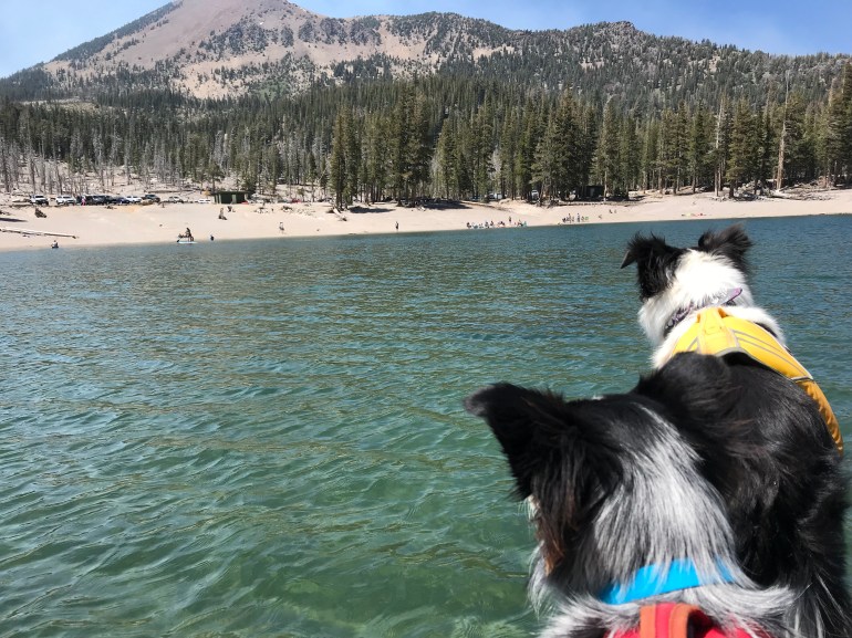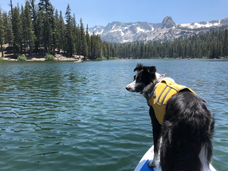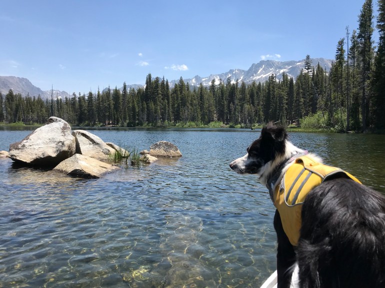 We went up first to Arrowhead Lake, which we definitely did NOT have to ourselves because there is a rock there that all the kids like to jump off of right into the water. It was quite fun to watch while we paddled around, and they treated us like rock stars because it was funny for them to see two dogs on the SUP. I did a tour with both momma and dad before we packed up and continued on to Skelton Lake.