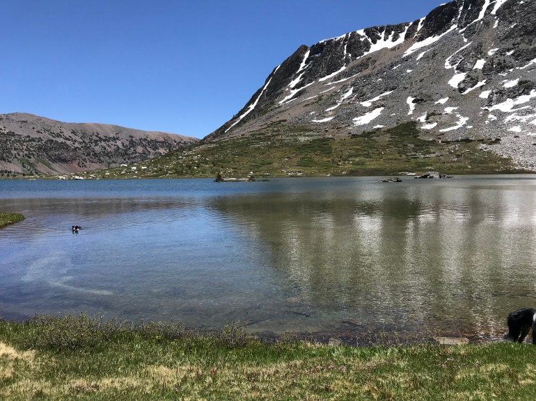 It wasn’t a hot day, it probably wasn’t even above 63 degrees but Lolo and I were very hot! Luckily the 20 lakes part of the name is very accurate (and actually, there surely has to be more, seriously lakes everywhere!). I swam at least a dozen times that day, probably more than I ever had on any other day. Momma thinks I must have had an inkling that it was going to be the end of the line for me for a while with my foot issue.