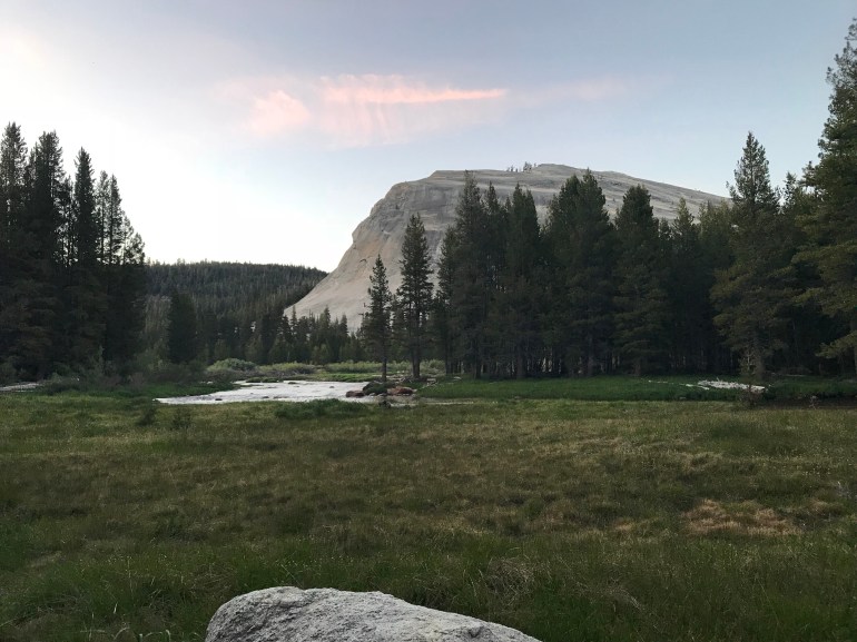 We finally ate, and started picking our way back to Saddlebag Lake. We didn’t want our vacation to be over! That night we slept up in Tuolumne Meadows, which momma loves if you get A loop and are close to Lembert Dome and the creek. We were in B loop but walked over to get our views anyways.