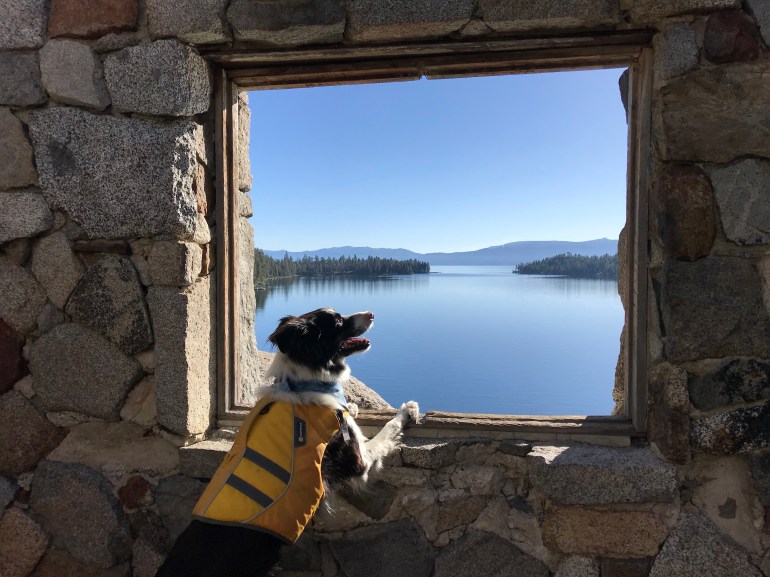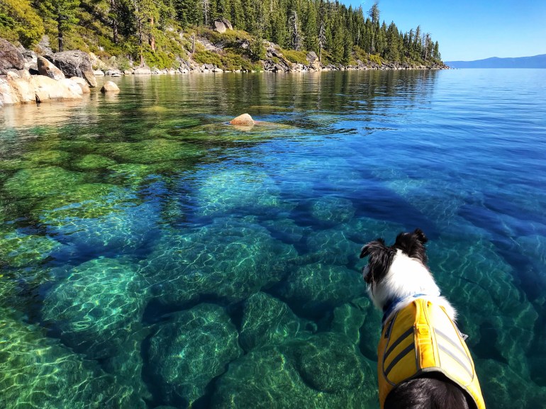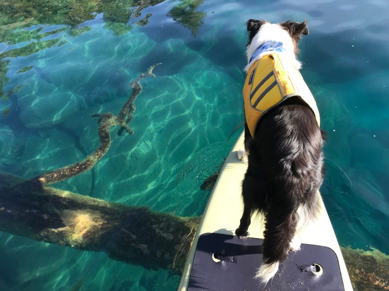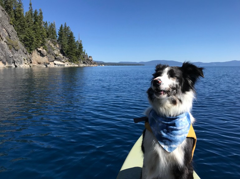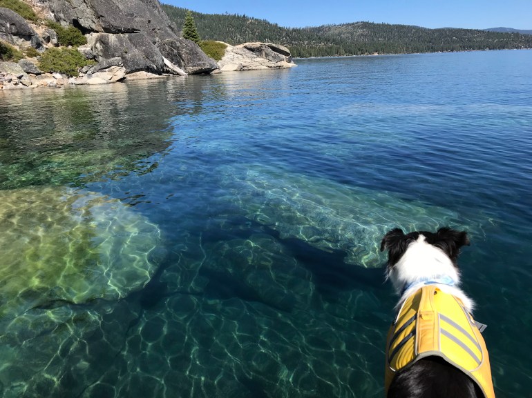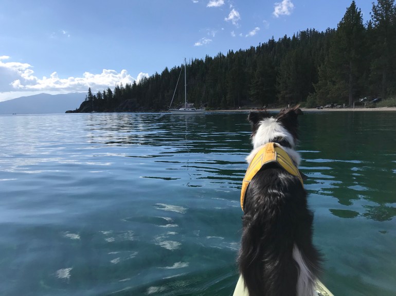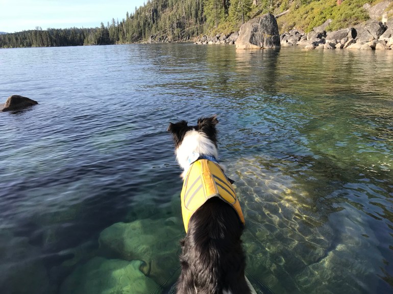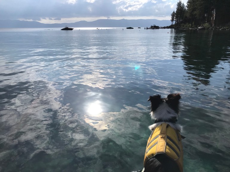 However, your dog can be on a SUP in the water around all of Lake Tahoe, so it’s a matter of figuring out where we can put in the SUP and get somehow across the beach onto the board. Good thing I’m less than 50# because momma says “I’ll just carry him across the beach so he isn’t technically on it.” And that’s how we have paddled out of D.L. Bliss to some of the prettiest parts of the west shore of Lake Tahoe.