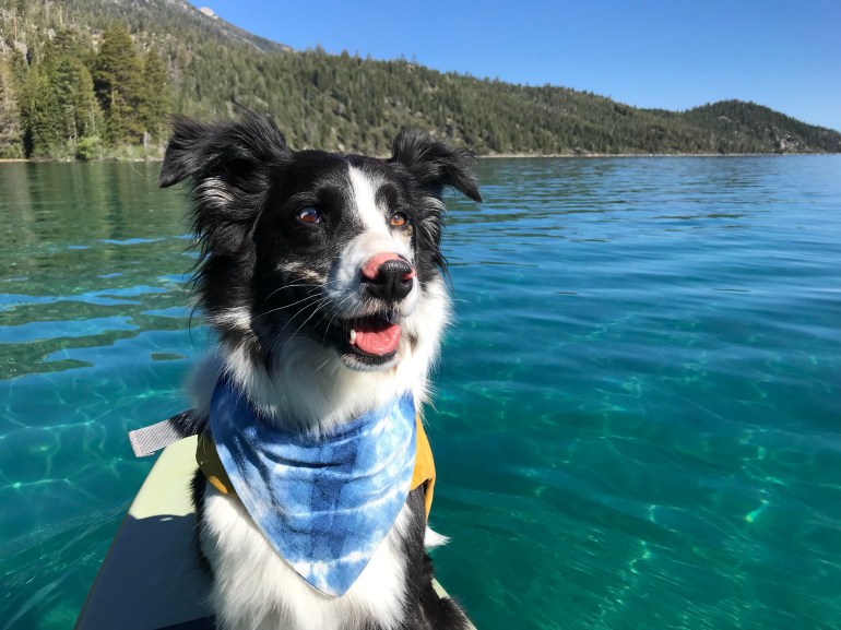 If I haven’t mentioned it before, momma is obsessed with Lake Tahoe. Every time we get the chance to SUP there she won’t shut up about how beautiful and amazing it is. Lately she’s got this idea in her head that we should eventually try to link up a bunch of our paddles and make our way around the ENTIRE lake. It’s a great idea, but it is a little tricky because there are lots of places you can’t have a dog ON the beach at Lake Tahoe.