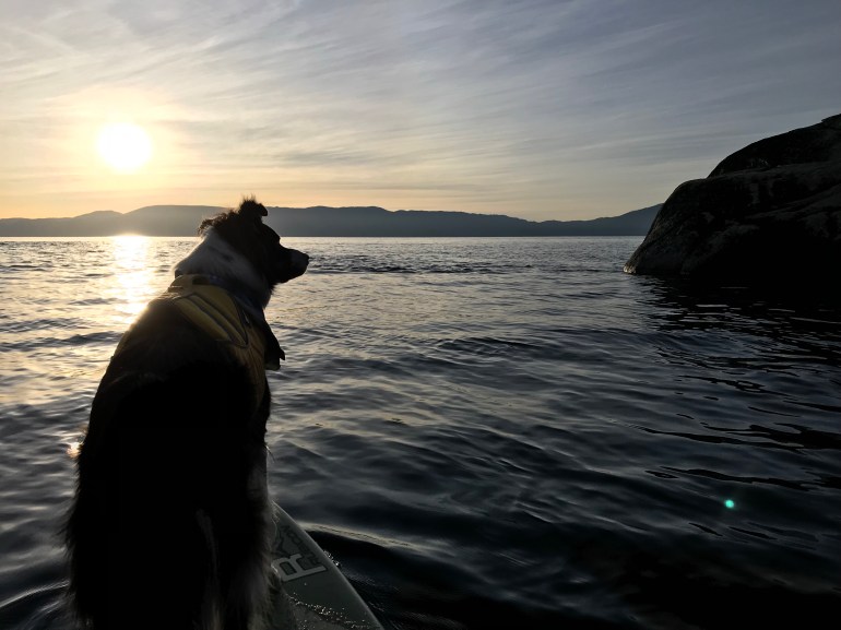 In her defense, there were about a dozen or more trails going everywhere, so it wasn’t very clear. I tried to show her a nice trail I thought we should take, and since she trusts me on we went. However, it was a trail to where we SHOULD have left the SUP because it was easy up and down – the trick was she had left the SUP basically on the edge of a cliff and not down here. So we couldn’t look down and see it. After many attempts down trails we finally found a trail that didn’t cliff out and made our way back down to the SUP. I was SO HAPPY to see the SUP – it was so bush-whacky that momma had to haul me up and down with my float coat a few times, which I was not super thrilled about. She assures me we will not go back there unless we go to the nice trail we discovered.