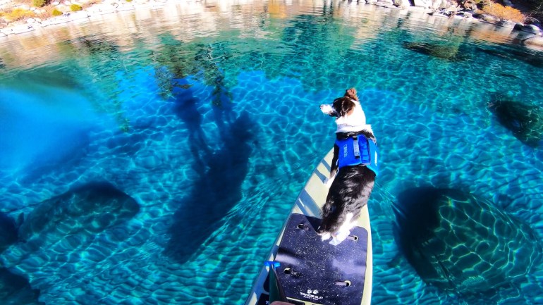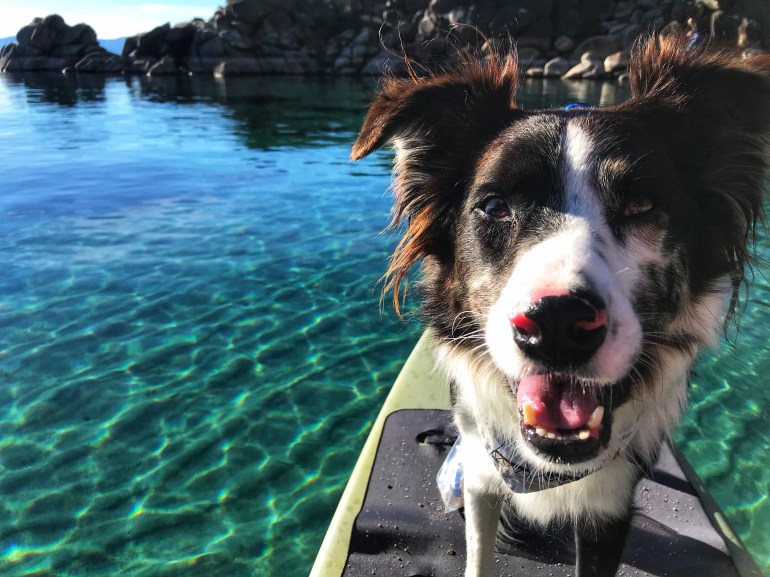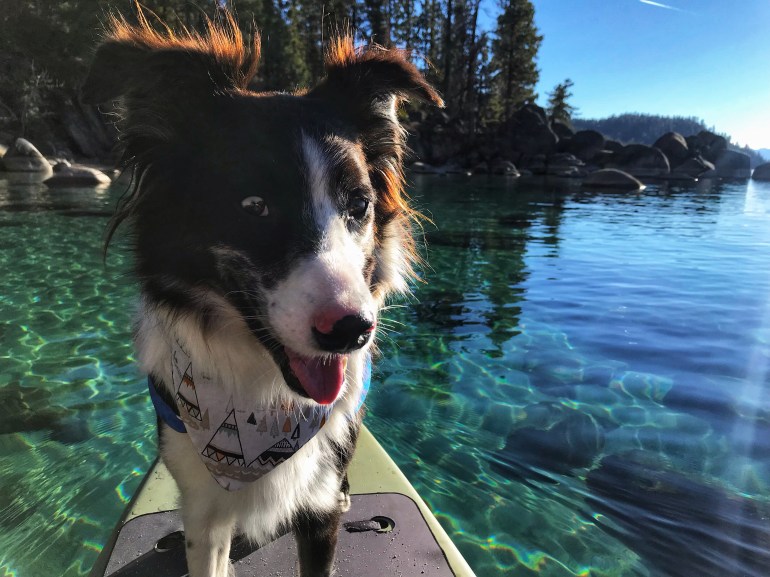 The SUP was on the car so I knew I was going paddling with momma, and daddy dropped us off at Sand Harbor so that he could take Lolo up to hike in the snow at Mount Rose. We had an amazing 4 hour paddle and got to enjoy such a pretty day that I am SO HAPPY we made the decision to leave Yosemite and that rain early. We are a little spoiled because we live really close to Yosemite and it was the perfect opportunity to get ME outside since it was super buggy friendly, but nothing beats a day on a calm lake Tahoe for momma (or me!).