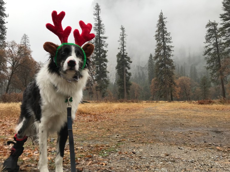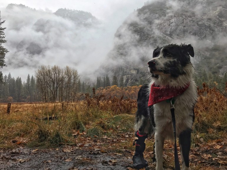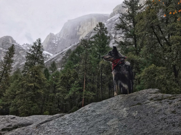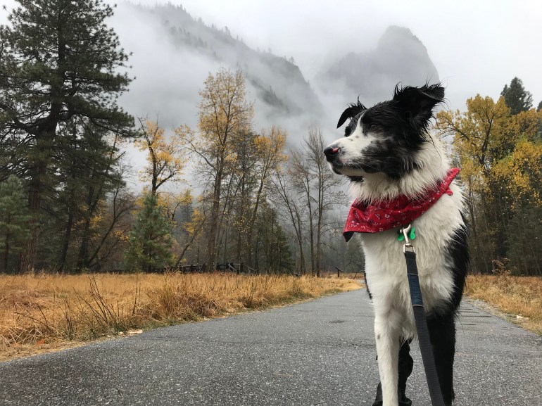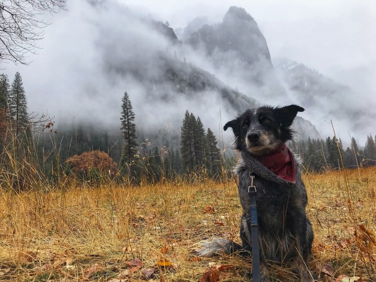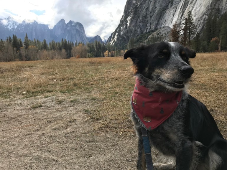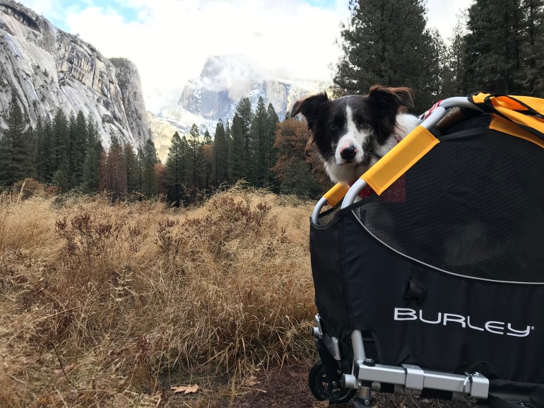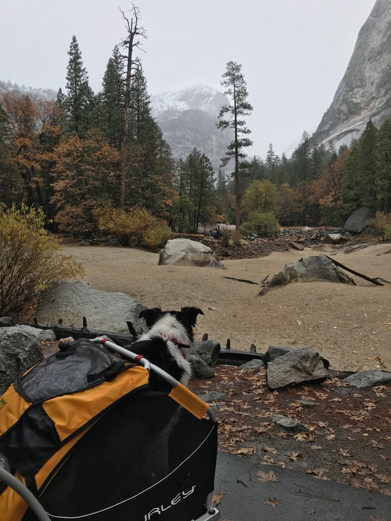 The buggy largely means we are stuck to paved paths for outside time since it’s not totally made for really bumpy off-road adventures. The perfect place to spend a long weekend in these types of conditions is Yosemite! The only places dogs are allowed in Yosemite are developed areas and paved trails. Momma got the idea in her head but had to stalk the recreation.gov website to wait for someone else to cancel a Thanksgiving reservation since it was a bit last minute, which eventually happened so we were all set to get outside, take in the awesomeness of the Yosemite Valley and do a little camping.