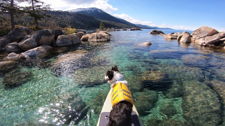 Our objective for the day was to paddle Carnelian Bay and Incline Village. It was a pretty tall order, made even worse when momma decided she didn’t want to risk putting in at Speedboat Beach after she saw something online about dogs not allowed to be at the beach there.