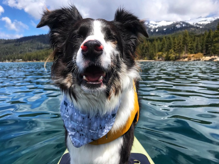 But momma doesn’t like conflict, and didn’t want to have to either get yelled at or have to go backtrack to Kings Beach to put in (where dogs are allowed to go in on a SUP!) so we just added extra mileage on to make sure we were doing the right thing.
